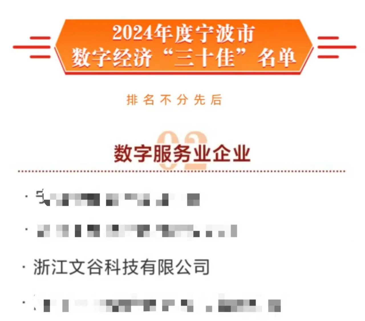 文谷科技入選,榮獲“2024年度寧波數字經(jīng)濟‘三十佳’”。文谷科技已連續兩年入選該榜單。