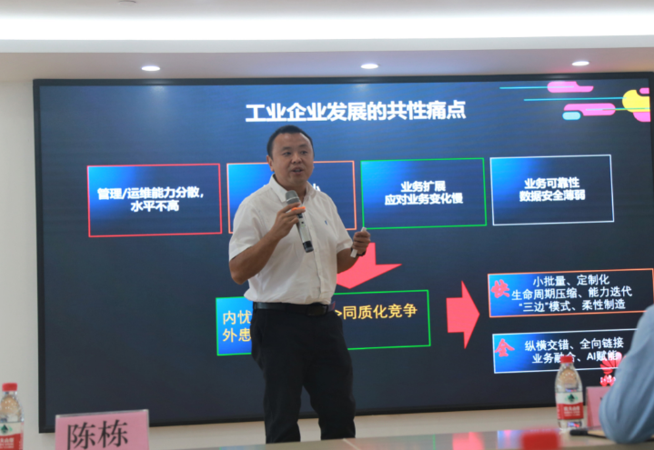 陳棟先生是工業(yè)互聯(lián)網(wǎng)領(lǐng)域的資深專(zhuān)家,依托華為在ICT領(lǐng)域30余年的技術(shù)積累以及自身的實(shí)踐經(jīng)驗,多年致力于企業(yè)數字化轉型工作。他認為,當前工業(yè)企業(yè)發(fā)展面臨著(zhù)共性痛點(diǎn),一方面是同質(zhì)化競爭嚴重,“大家的生產(chǎn)資料、加工方法,甚至商業(yè)模式都是高度吻合的?!?br style="margin:0px;padding:0px;max-width:100%;box-sizing:border-box !important;overflow-wrap:break-word !important;" />
